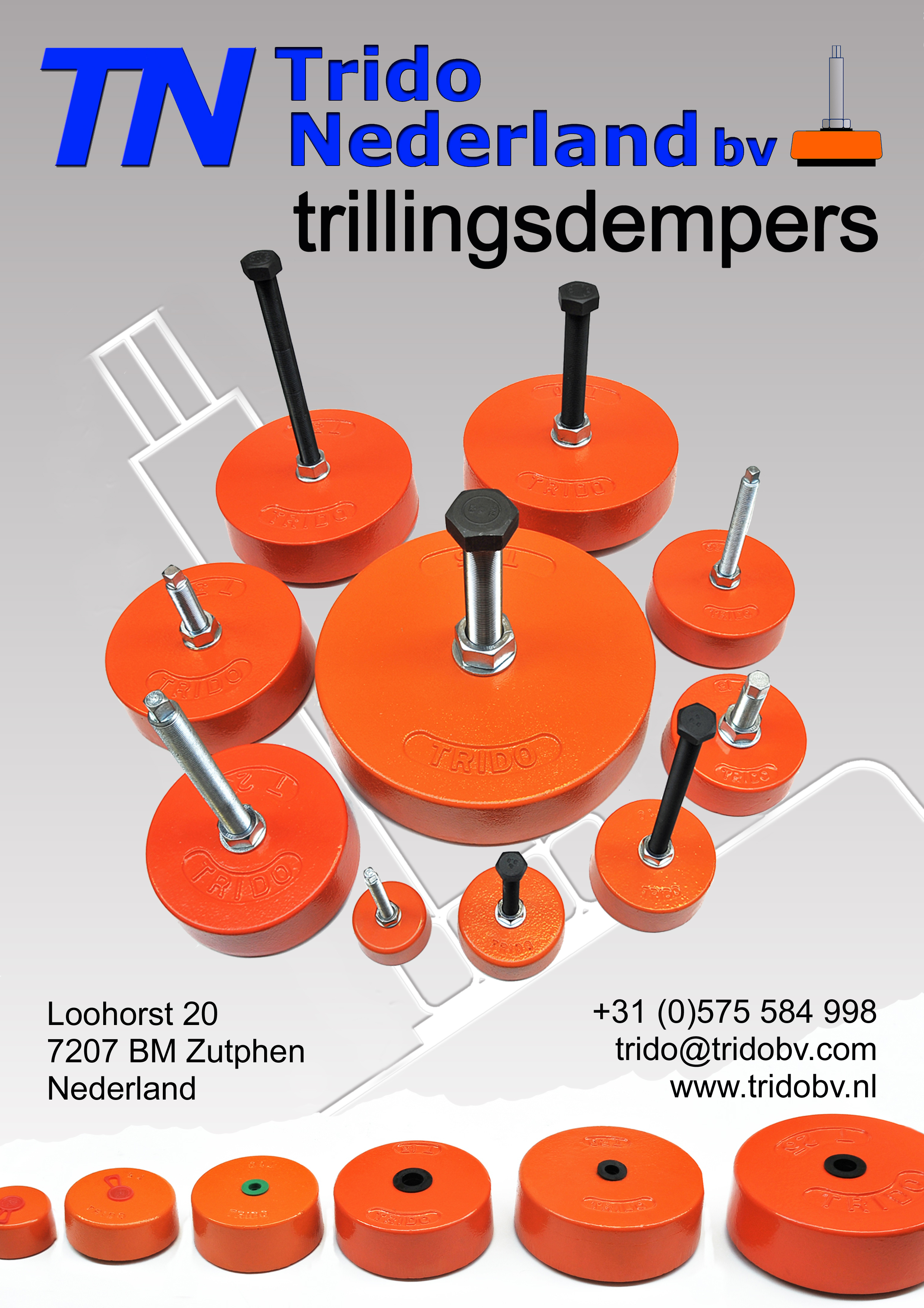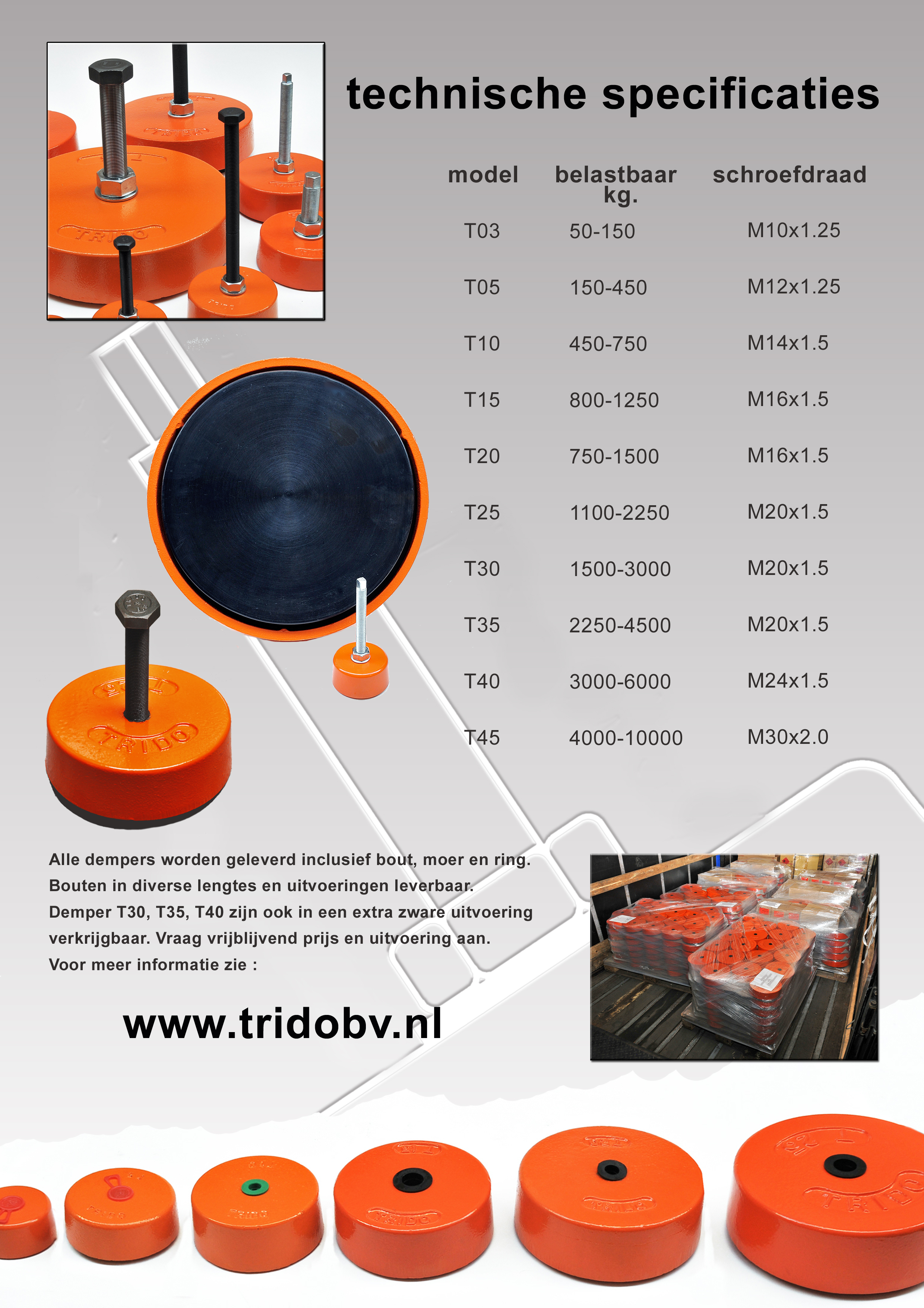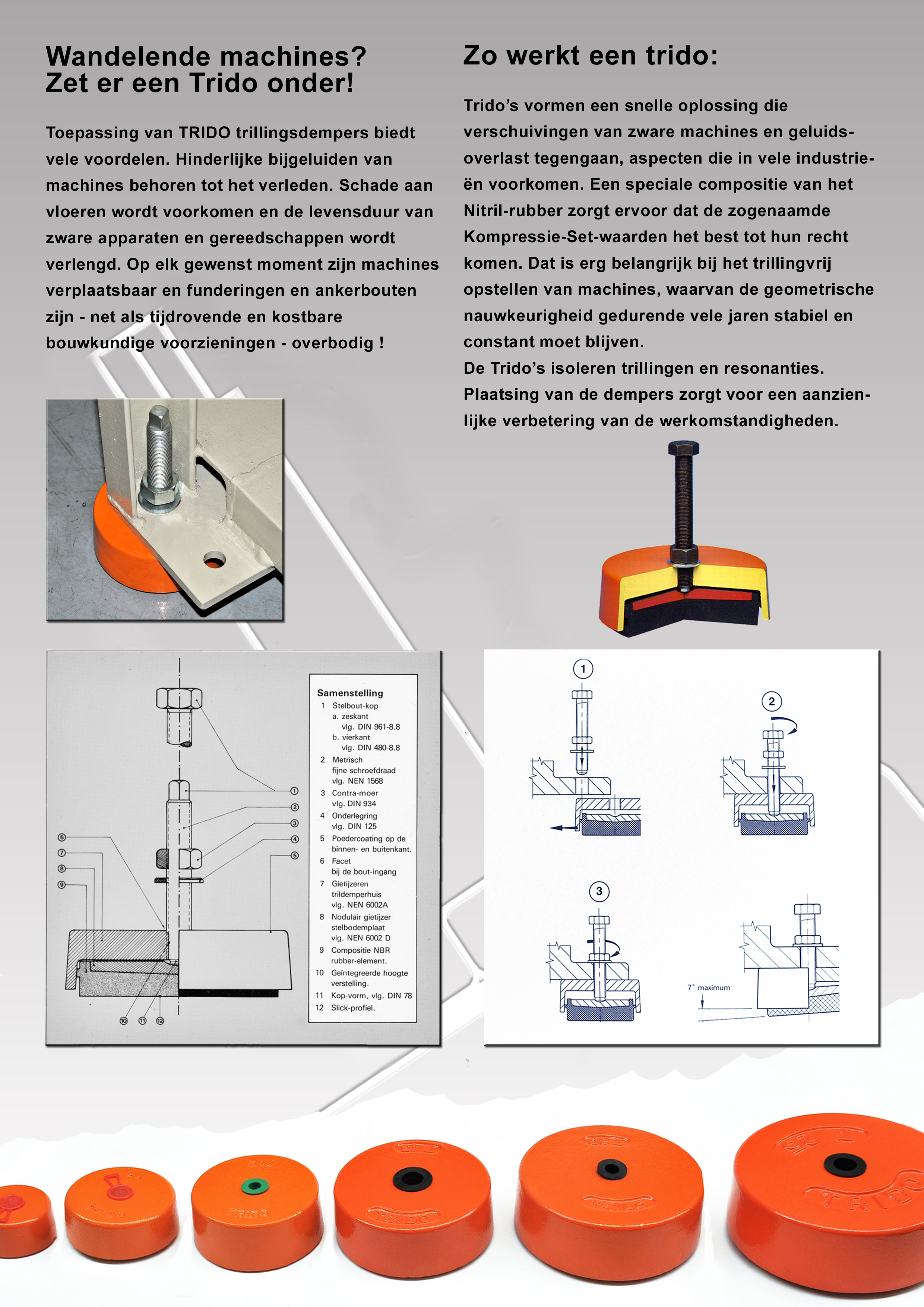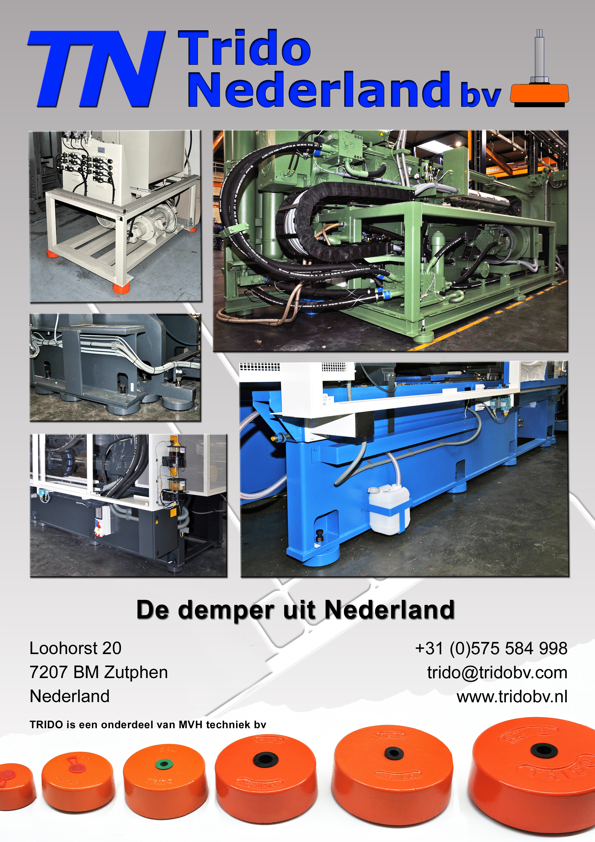 Trido is een onderdeel van MVH-Techniek. Onze machinevoeten leveren we aan allerlei bedrijven, ongeacht de grootte ervan. De TRIDO’s zijn bestemd voor machines tot wel driehonderd ton, geen sinecure dus !